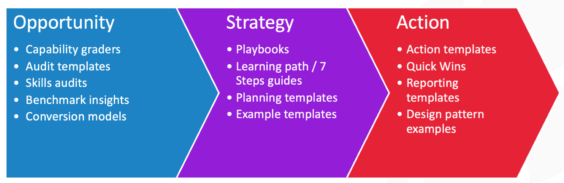 Our Learning Paths are integrated with downloadable templates to help you audit your performance, set forecasts and create action plans. Each Learning Path includes different types of example templates in Excel, Powerpoint and Word from our resource library to help you create your action plans as you work through the Learning Path.
