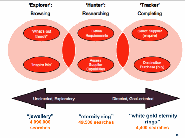 There are three key stages to the purchase cycle and search plays an important role at each stage. However, the type of search that people perform varies significantly and you need.