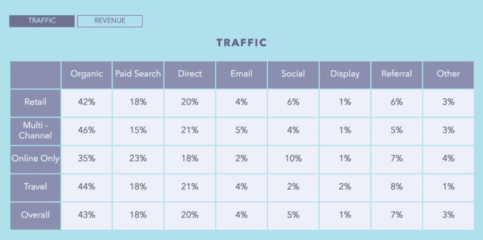 Other statistics on the most popular traffic sources and media channels for retailers?