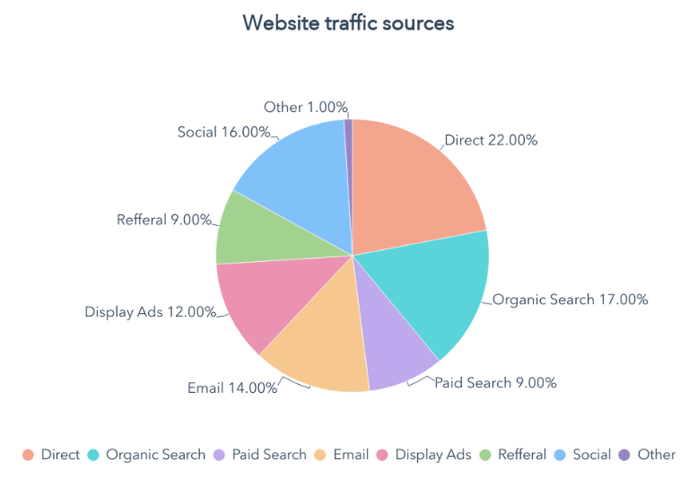 Hubspot's 2022 user survey, compiled by 400+ users, primarily of B2C audiences, demonstrates a mixed bag in terms of traffic attribution.