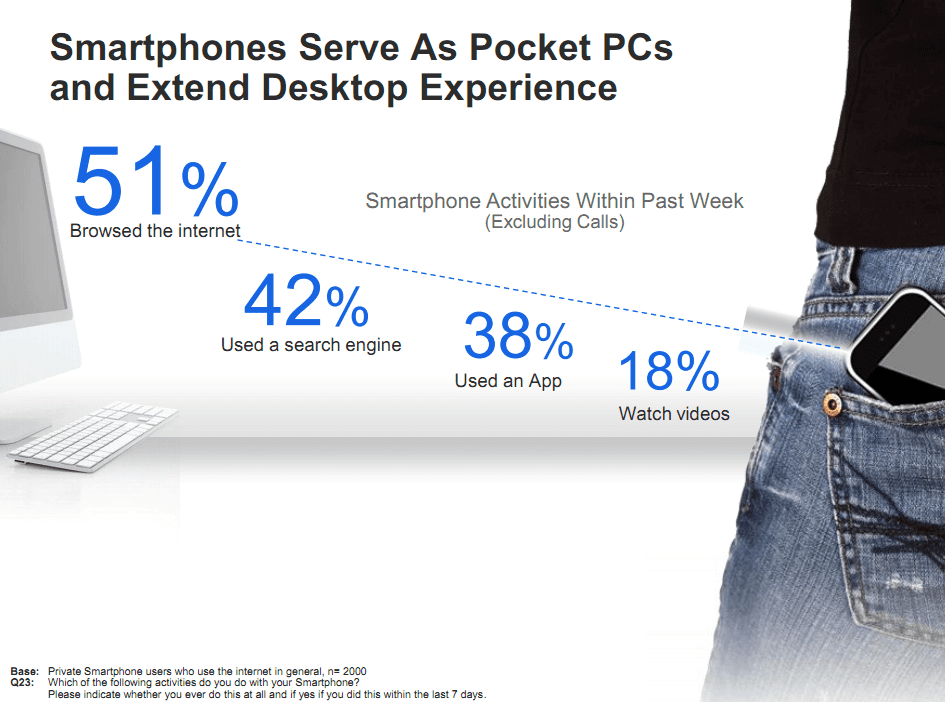 This chart shows how frequently a smartphone is used for different activities in a 7 day period. One of the best ways for gauging active use. It also shows the increasing importance of mobile search.