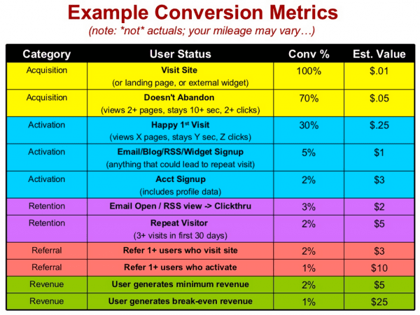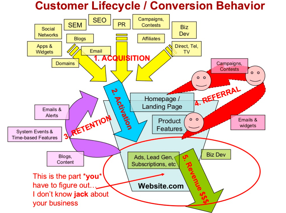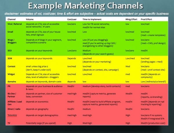 Not much new here, we have covered the relative value of different digital channels in our Digital Marketing: Strategy, Implementation and Practice book many years ago. Dave McClure is often referenced for his way of summarising the channel review, and rightly so. This is a great way to summarise the value of different channels to a startup or a small business.