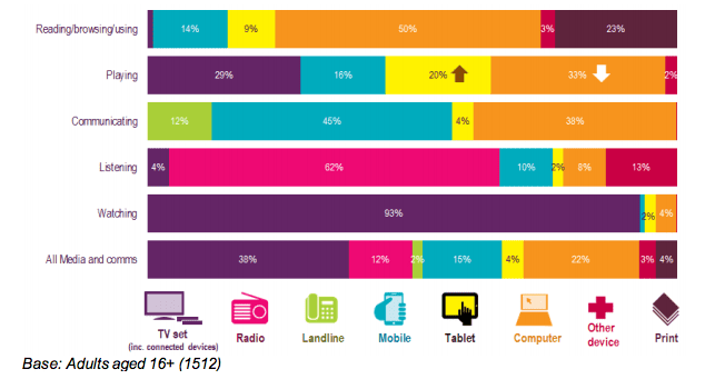 One thing to point out about this chart: is that it is an average across all age ranges. So these will vary within different age groups. As a reference point, Ofcom have researched behaviour for each of the sections in Fig 1.4.4 if you're curious to delve a little deeper.