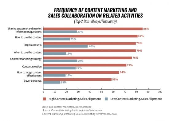 The study conducted by Content Marketing Institute and LinkedIn Research also found that a stronger culture of alignment would be the best way to increase sales and content marketing alignment.
