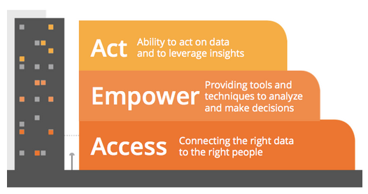 This focus on making analytics more actionable which we’re proponents of at Smart Insights is shown by it’s Act > Empower > Access positioning shown below that was the theme of their conference and is a good model for increasing the use of analytics within an organisation.