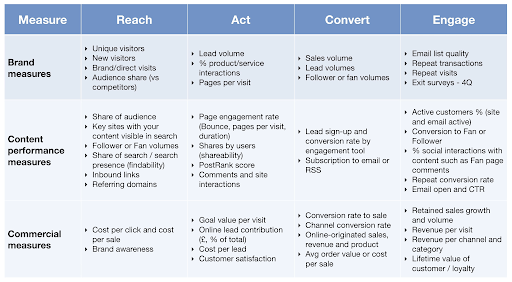 The objective you’ve set in the first stage will help you shape your strategy. For example, if you are developing a new product offering, you may need to focus on Reach to build awareness of your brand and grow your audience. But if you are already established you may instead want to focus on Act to prompt interaction, subscribers, and leads.