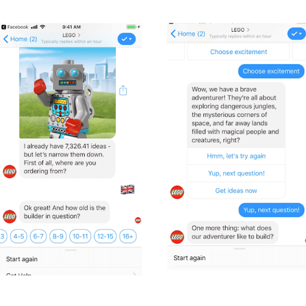 One of my favourite examples of a brand using a chatbot to enhance the customer experience is LEGO. Nicknamed Ralph, the bot is available to consumers every day of the year and provides a great experience by quickly helping people choose and buy the perfect gift based on the age and interests of the recipient: