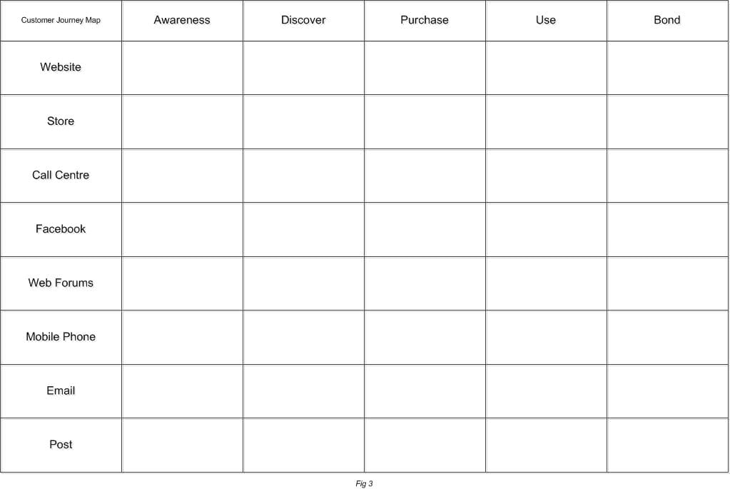This can then be used to look at typical customer personas to map their journey from initial awareness, through purchase to bonding and sharing their satisfaction.