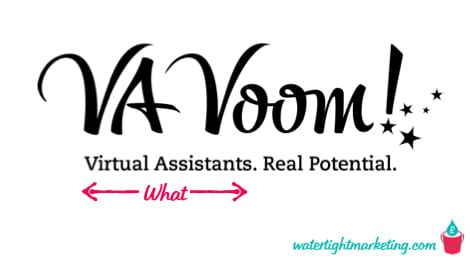 In the worked example that runs through my book Watertight Marketing, I’ve used a fictional company – VA-Voom! The strap line is: Virtual Assistants. Real Potential.
