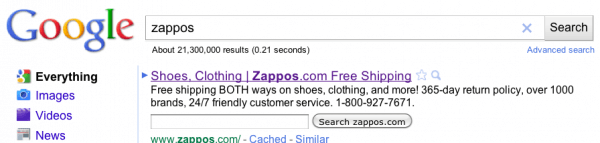 Of course the OVP starts with the search results page. Zappos reminds us - they make their OVP clearer than most in their home page title and description: