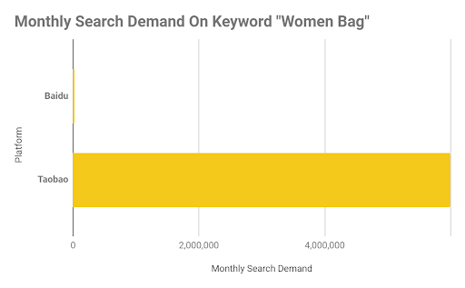 Figure 3: Monthly search interest for ‘women’s bag’ on Baidu versus Taobao (data from Baidu and Taobao keyword planners)