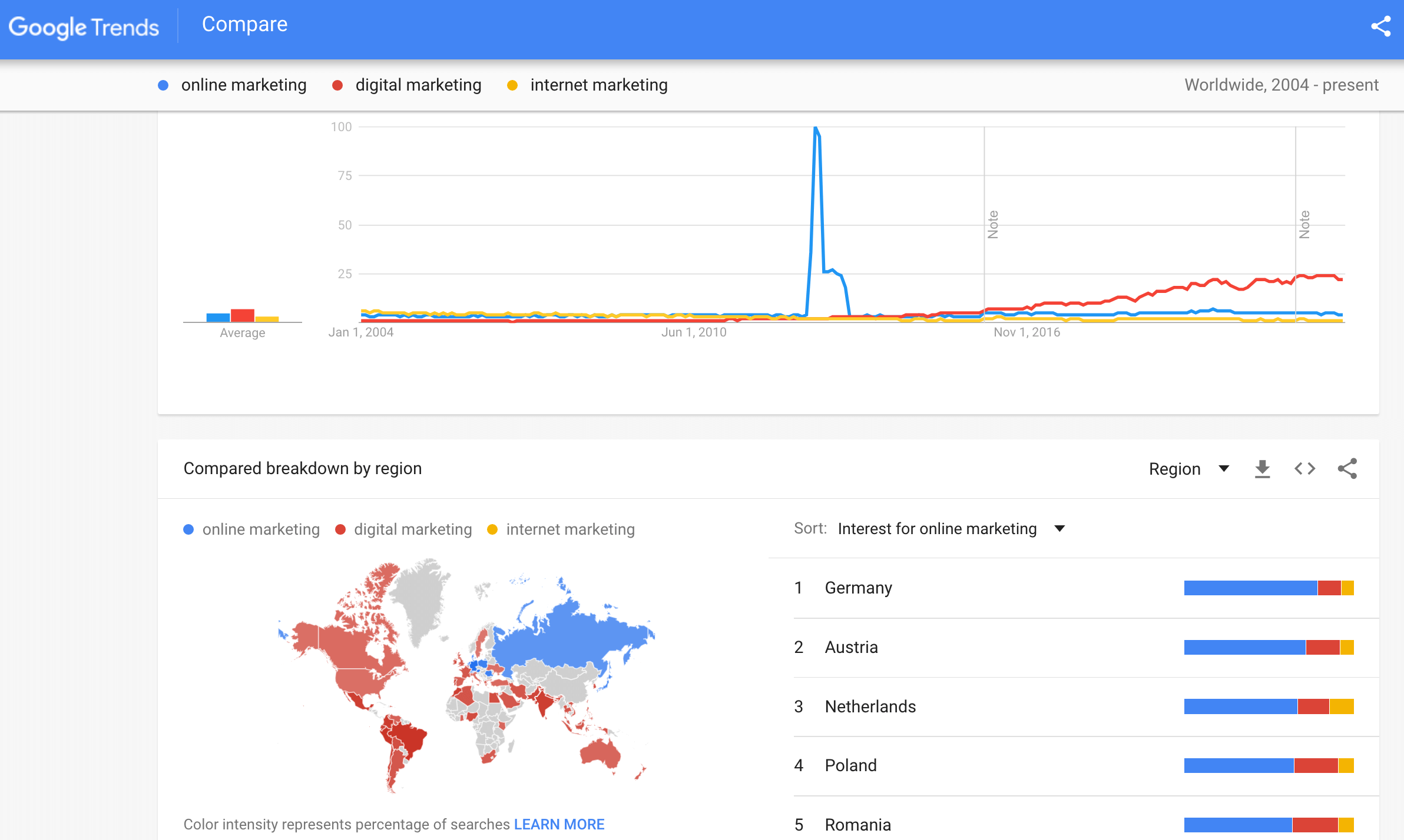 Today, perhaps the bigger question is whether digital marketing is a necessary term concept since some commentators have stated that we're now in a post-digital era with 'almost all' marketing now being digital now digital media and technology have become so pervasive. My view on this, explained in the post above is that we do very much need digital marketing, since many businesses still undergoing digital transformation and recruiting the digital marketing jobs and roles needed to compete. The trend in search volume also suggests there are more people searching for digital marketing than ever before, albeit with a drop before Christmas.