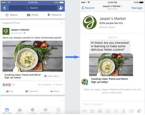 Here’s an example of a sponsored Messenger advert by Jasper’s Market.