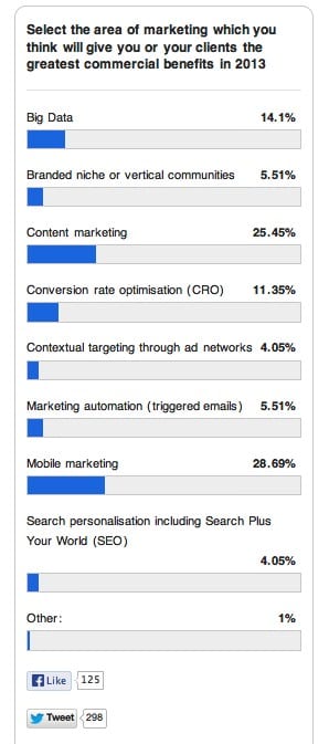 In this review I picked out what I saw as the major trends in marketing activities and asked readers to vote on what they saw as important. These are the results: