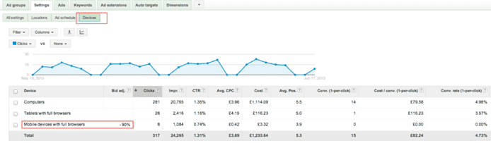 You will notice that tablet performance is visible but currently it is not possible to adjust bids for these devices. We can speculate that Google may introduce this functionality in the future.