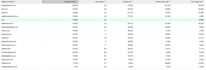 This report shows you which competitors are bidding on the same keywords as you and how your impression share compares to theirs.