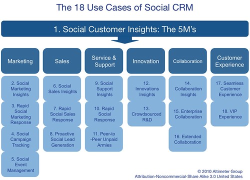 In October 2010 Accenture published a useful new guide to social CRM summarising the transformation required in organisations by the advent of Social CRM. This is useful addition to the framework of 18 CRM processes of Social CRM covered in the Altimeter Social CRM report from earlier in 2010 covered later in this briefing. We think Social CRM and Social Business are still useful concepts to explain the changes to a business needed for the transformation to make full use of social media - the 18 Use cases of Social CRM for example really shows the scope of social media is much more than posting updates on social networks.