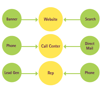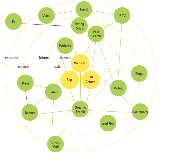 This seems to be the situation c2000. Here a combination of outbound and inbound marketing occurs through a relatively number of channels.