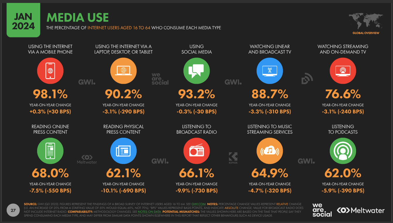 Device ownership data from the latest Datareportal Global Overview shows that 97.6% of internet users aged 16-24 own a smart phone. What's more, while 90% of internet users are accessing the internet via a laptop/desktop/tablet, no 98.1% are accessing the internet on their phone.
