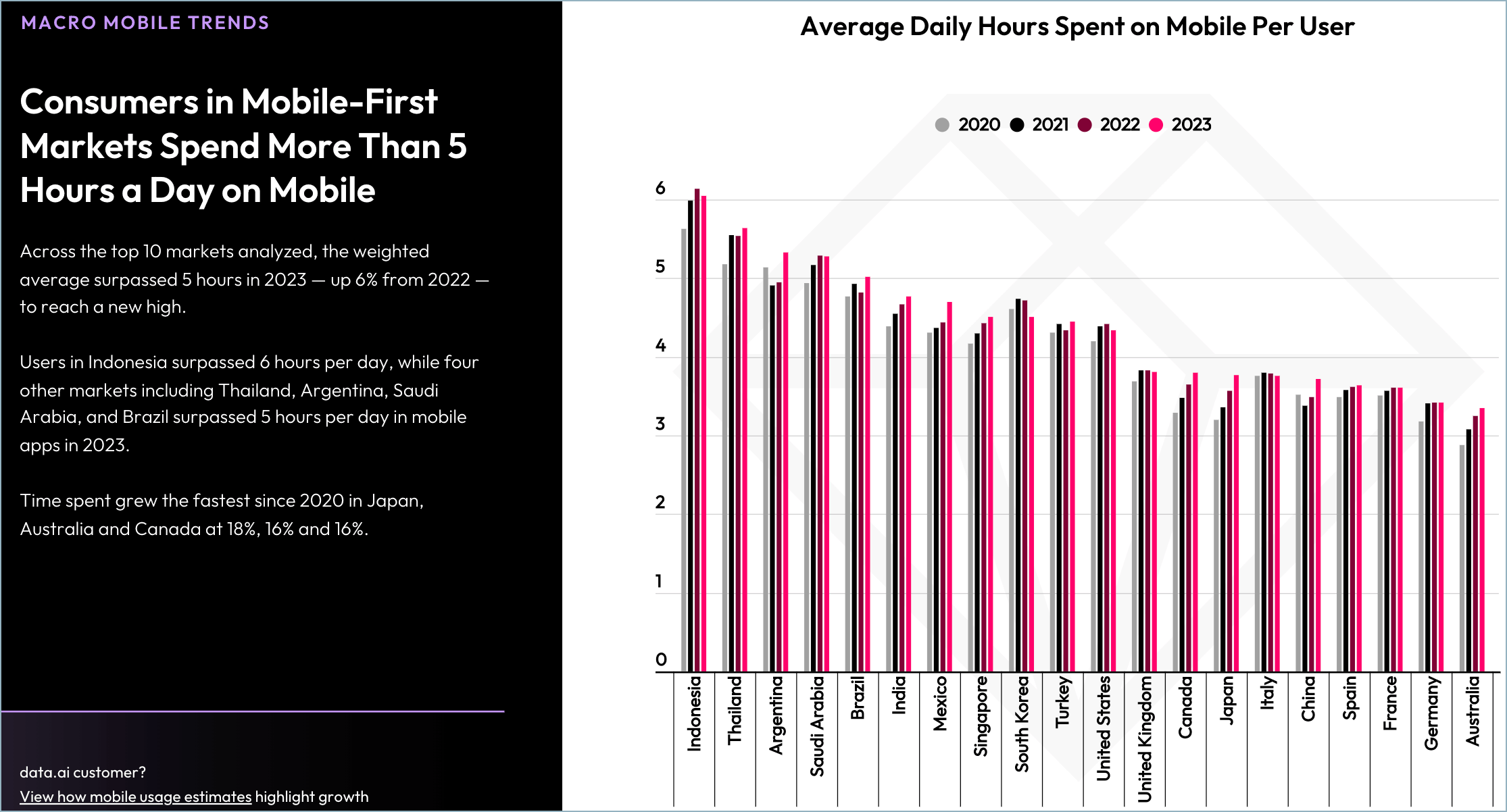 Data.ai provides one of the best sources for understanding mobile app usage. Their State of Mobile 2024 report reveals that despite nearly everyone owning a smartphone, new app downloads and total hours spent continue to increase.