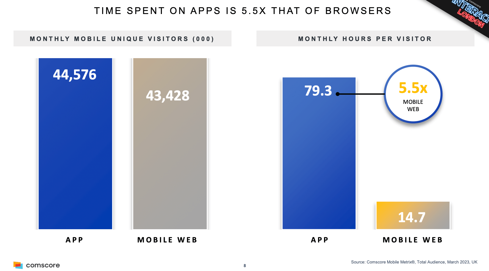 Amount of time on mobile apps is 5.5 X that of the mobile web