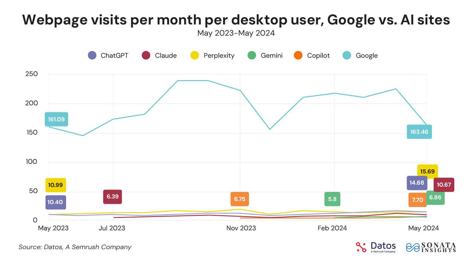 Plus, with the July 2024 announcement that OpenAI will launch SearchGPT there will be an accelerating trend to replacement of traditional search queries by AI search queries.