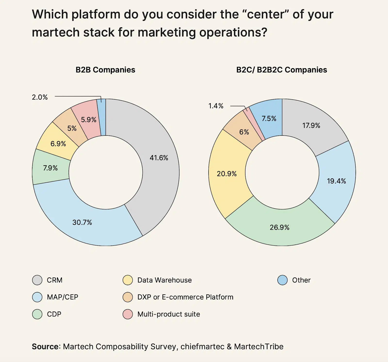 Although there is a trend away from CRM platforms to data-centred platforms such as CDPs and Datawarehouses…
