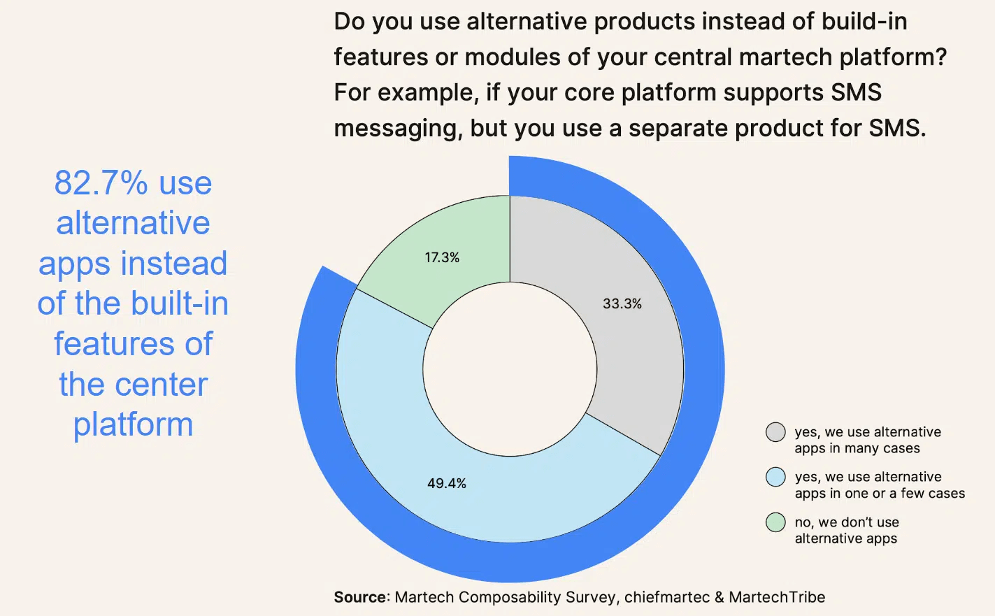What’s that then you’ll be asking. I picked up the term from Martech guru Scott Brinker who said: “What an amazing time to be working in marketing and martech! Our entire industry is blossoming like the wildflower “super bloom” happening in California this spring, fed by the rain, rivers, and sunshine of generative AI, universal cloud data warehouses, and software composability”. Well, I’m not sure it’s that good, but what is composability. It’s essentially what we used to call interoperability in IT. It’s defined as: