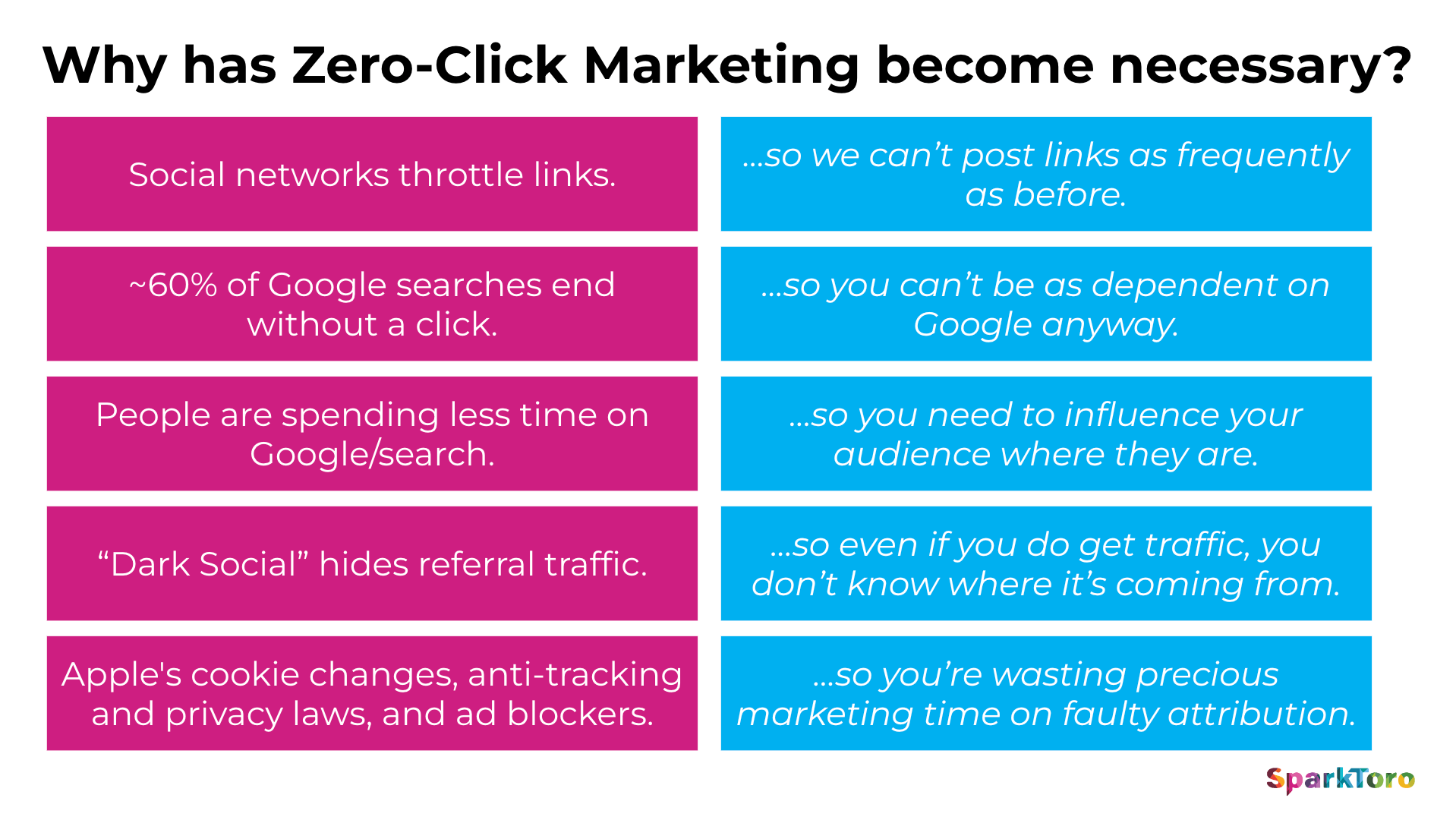 Amanda Natividad has taken this one step further by exploring the concept of Zero Click Marketing as an activity. I think this is taking it too far, but it’s useful to prompt people on where they should focus their activities to get success: