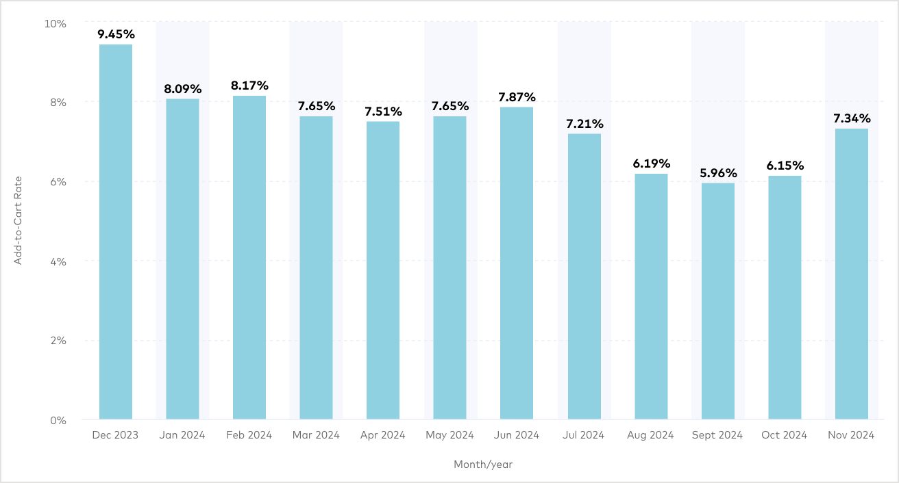 | Add-to-cart rate | 6.4% | 6.2% | 6.8% |