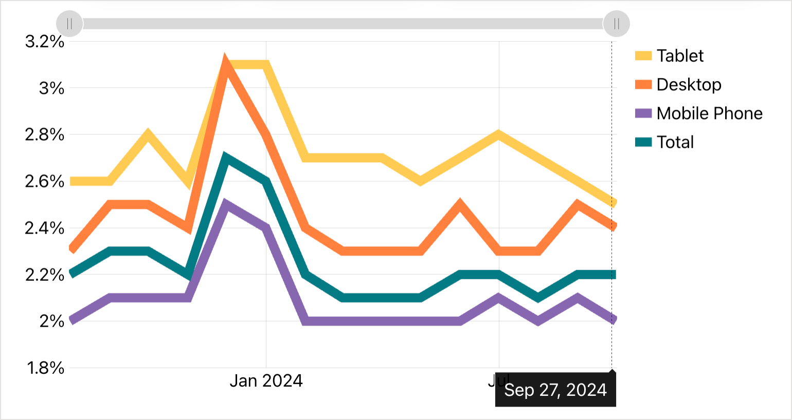- Mobile usage dominates retails usage (approximately 70% to 30%) with tablet negligible (2%) so not shown.