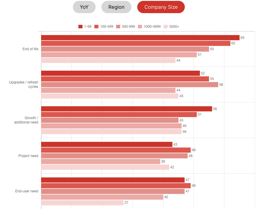 One simple example is the size of the company making the purchase. The long story short here being - IT spending is driven by different things for different company sizes.