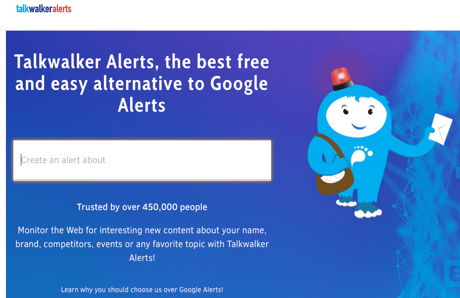 To help here, I recommend the free Talkwalker Alerts service from the social listening service Talkwalker (now part of Hootsuite). Talkwalker’s free social search also monitors mentions of your brand, hashtags and competitors on social media.