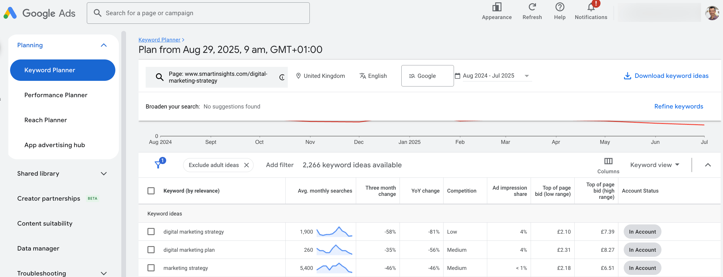 The Google Keyword Planner has been an essential tool for hands-on marketers since it launched since it enables you to get into the minds of your audience, seeing what they are searching by how popular different search terms are. There are equivalent tools from search tools providers like SEMRush, but these are limited in that they don't use the insights direct from Google.