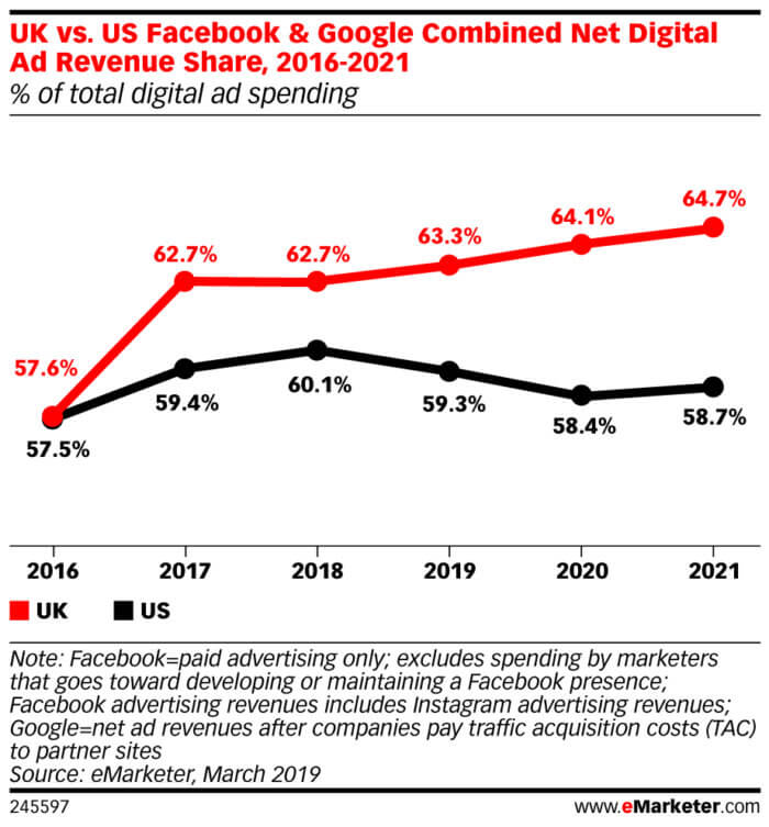In 2020, we can see the huge impact that digital marketing has had over the last decade, and more. Looking at advertising alone, these eMarketer predictions show how the duopoly of Facebook and Google dominate paid media investments online, although offline media buys remain important for many larger brands.alfred
