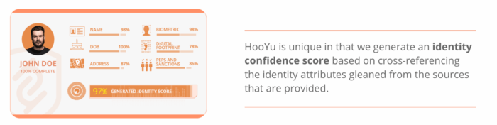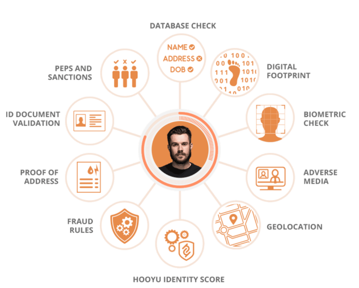 For example, UK startup Hooyu blends traditional methods of customer verification such as database checks (where available) with ID document validation, digital footprint analysis, geo-location and facial biometrics. While this is most relevant for banks and other gambling applications, it indicates the range of data points that are now available.