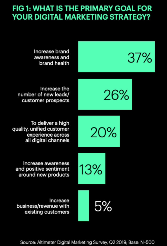 The role of digital in creating a unified customer experience is also high in the response, but it’s shocking that digital marketing isn’t seen as a driver of boosting revenue from existing customers. It’s an artefact of the question since digital marketing is effective in achieving all of these goals, including customer retention.