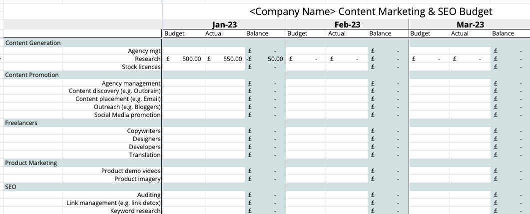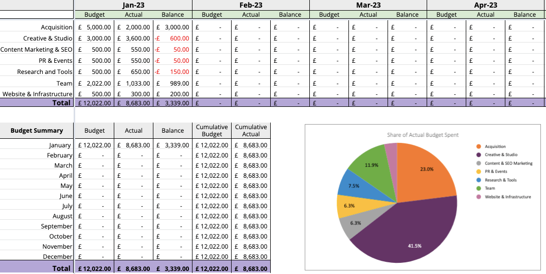 Having a budget spreadsheet to see the share percentage for each channel of marketing is essential - understand which channel is getting as much focus and adjust your budget accordingly.
