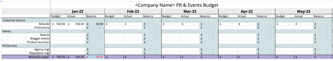 Submitting your company/agency for an award can be costly, and whilst many of us would like to gain as much free PR as possible, this is not always possible. Our spreadsheet calculates the total cost for all PR and events including agency management and product launch PR costs.