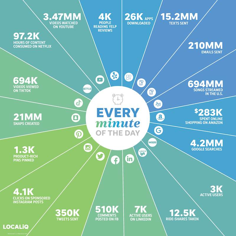 With this much search and social media activity every minute, content shock is increasing as a challenge for marketers in 2021. Take a step back and ask, what happens online in 60 seconds?